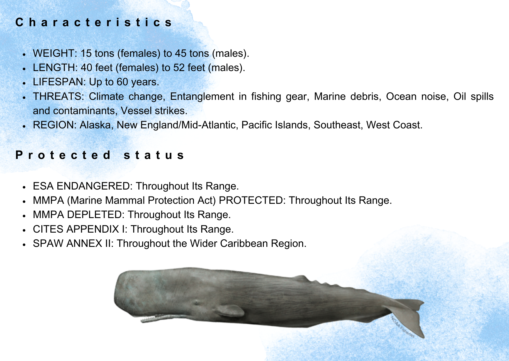 Sperm Whale | NOAA Fisheries. (n.d.). Retrieved April 20, 2023, from https://www.fisheries.noaa.gov/species/sperm-whale